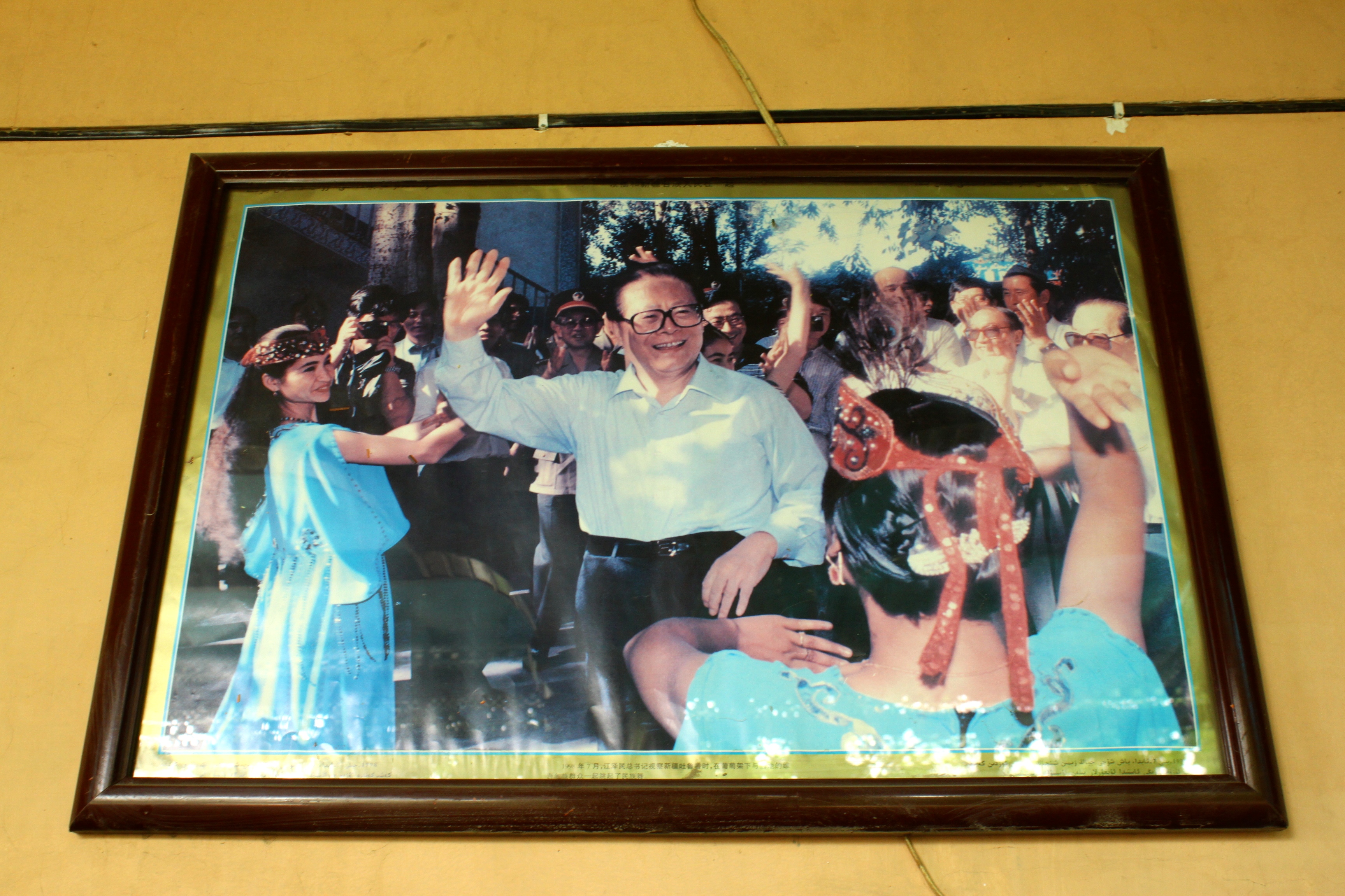 Previous Image Next Image IMG_9739 Former General Secretary Jiang Zemin 江泽民 making a classic happy encounter with the happy ethnic people of Xinjiang.